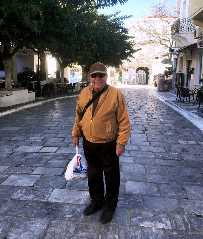 Πλατεία Καΐρη. Μοναδικός περαστικός ο κυρ-Βασίλης. Χαμογελαστός με την σακούλα του στο χέρι Δεν τον τρόμαξαν τα χρόνια, δεν τον τρομάζει και η μοναξιά του χειμώνα (φωτ. Χαρίδημος)