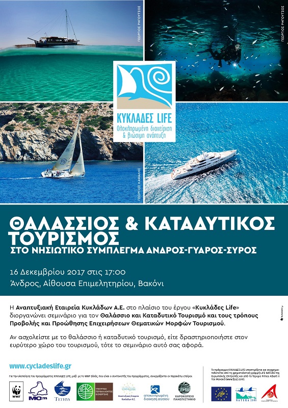 Αν ασχολείστε με το θαλάσσιο ή καταδυτικό τουρισμό, είτε δραστηριοποιήστε στον ευρύτερο χώρο του τουρισμού, τότε το σεμινάριο αυτό σας αφορά. Άνδρος, 16 Δεκεμβρίου 2017, Αίθουσα Επιμελητηρίου, Βακόνι 17:00. Με εκτίμηση, Τσαγκαράκη Καλλιόπη