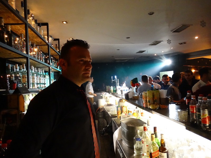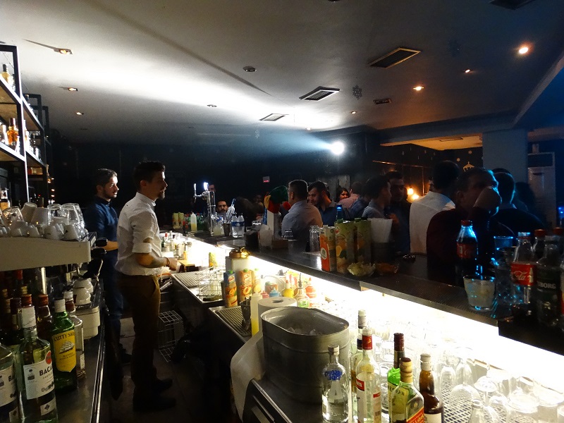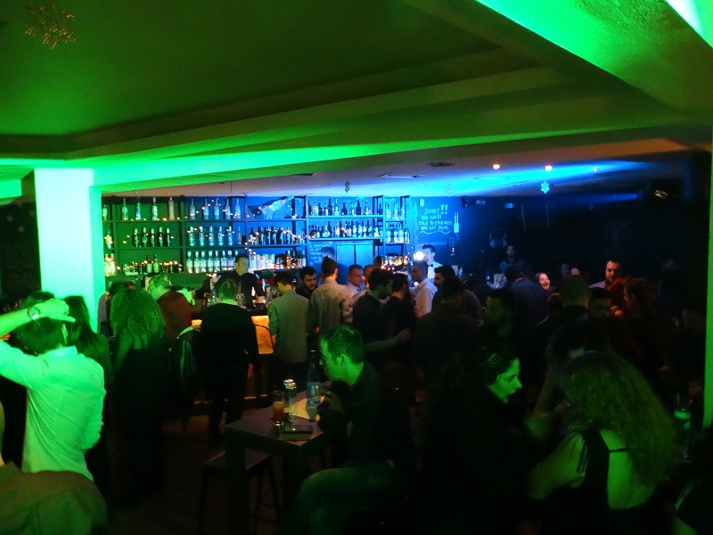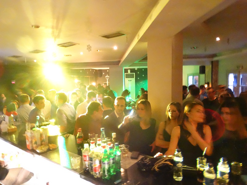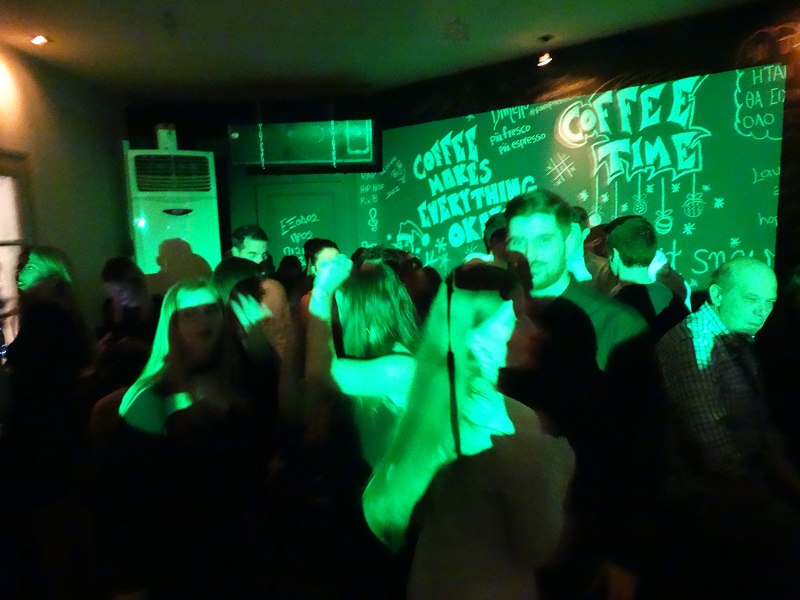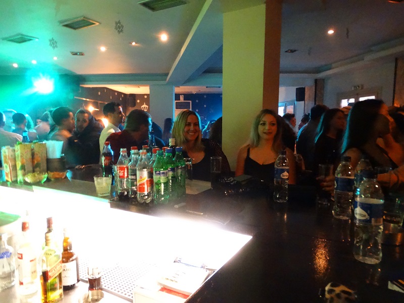 Στις αντανακλασεις των φωτορυθμικών γύρω από τον πάγκο του μπαρ. Χαμόγελα, συζητηση, χαρούμενα νεανικά πρόσωπα. Αλλά και μερικοί μεγαλύτεροι. Οι έντονες αντανακλάσεις δεν βοήθαγαν την φωτογράφηση. Βοήθαγαν όμως το κέφι και αποτύπωναν την ένταση. Και αυτό είχε σημασία σε τελευταία ανάλυση (φωτ. Εν Άνδρω).