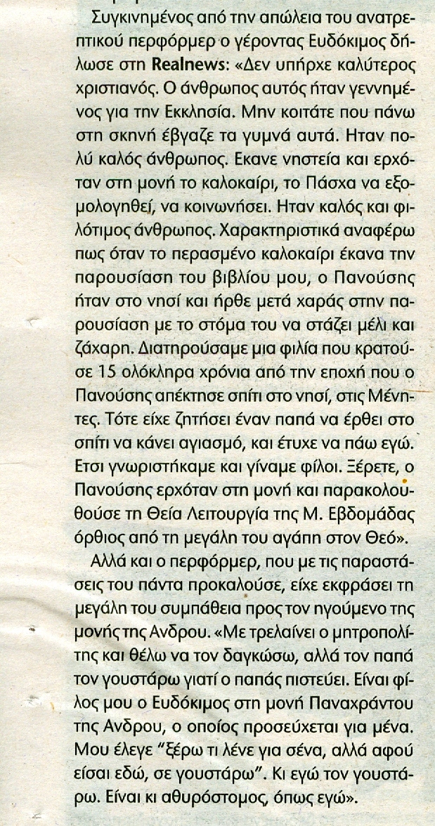Μιλά στη Real News ο Γέροντας Ευδόκιμος για την φιλία του με τον Τζίμη Πανούση: