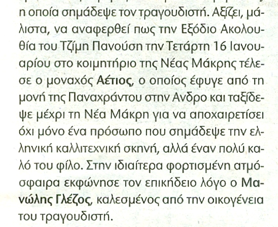 Και ένα σχόλιο της εφημερίδας για την Εξόδιο Ακολουθία του Τζιμάκου: