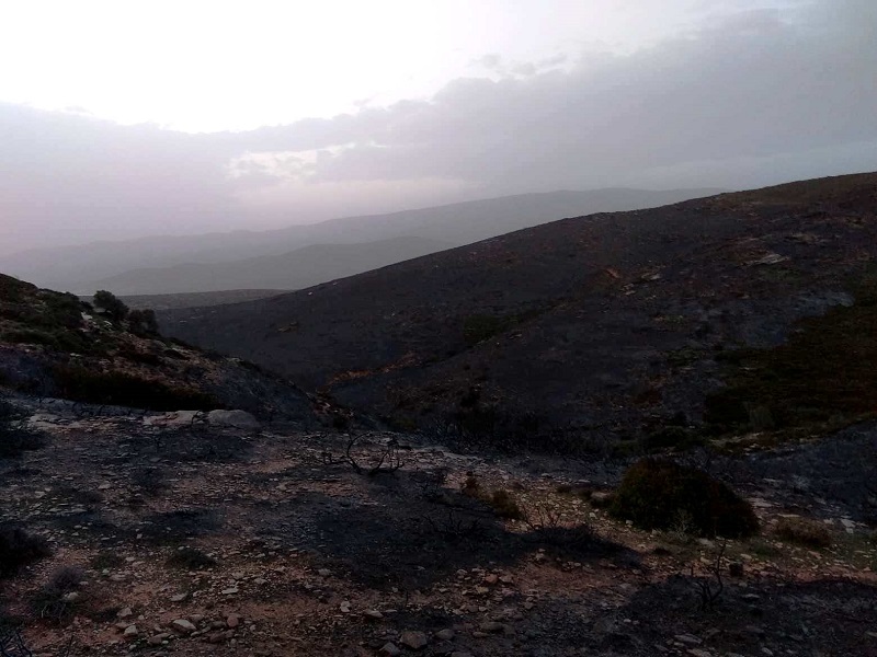 ΤΕΤΑΡΤΗ, 7/3/2018, ΩΡΑ 07:00 Η φωτιά ολοκλήρωσε όλη νύχτα το έργο της και κατέληξε να σβήσει το πρωί έχοντας κάψει κατά μια πρώτη εκτίμηση πάνω από 1.000 στρέμματα θάμνων και φρύγανων.