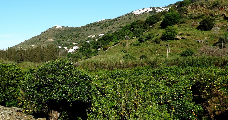 Απομεσημερο στα Λειβάδια. Μια εικόνα του παραδείσου. Μέσα στις κατάφορτες λεμονιές, πορτοκαλιές, μανταρινιές το τοπίο. Άνδρος μνήμης για ότι υπήρξε. Άνδρος ελπίδας για ότι μπορεί ίσως να υπάρξει (φωτ. Εν Άνδρω).