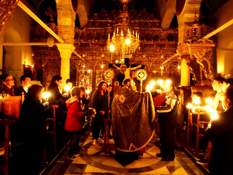Το έβδομο Ευαγγέλιο. Τα παιδάκια-παραστάτες κρατάνε τα κεριά. Τα 12 Ευαγγέλια και η Σταυρωση. Εικόνες φορτωμένες μνήμες, αναφορές. συμβολισμούς. Εικόνες βγαλμένες από το Βυζάντιο και την ιστορία (φωτ. Εν Άνδρω).