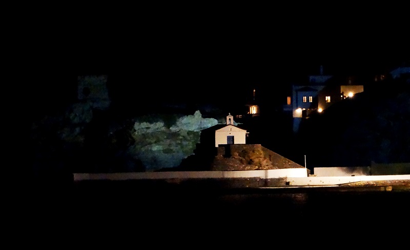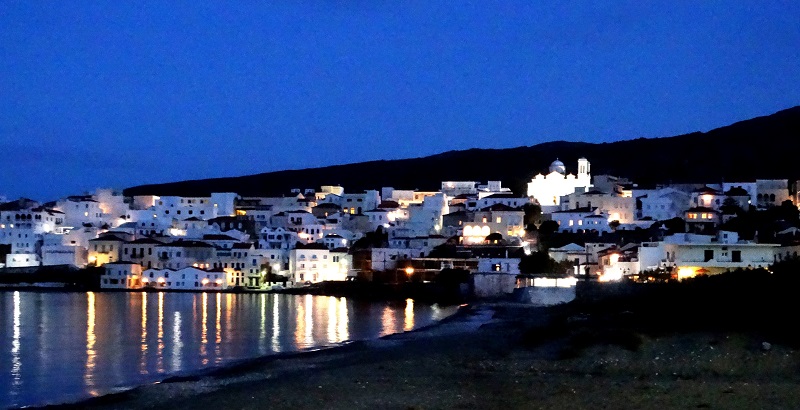 Παράξενο Πάσχα. Πρώιμο. Άνοιξη τη μέρα. Υγρασία και ψύχρα το βράδι. Το Αιγαίο ήρεμο. Παράξενος καιρός ο νοτιάς. Παράξενη και η κίνηση. Περιορισμένη για την ώρα. Στο λιμάνι τα καράβια πηγαινοέρχονται. Αλλά ο κόσμος σχετικά λίγος. Στην Ρίβα της Χώρας έχουν ανοίξει μερικά αρχοντικά. Τα φώτα τους πάνω από την Αγία Θαλασσινή μοιάζει να λένε: είμαστε εδώ για μια ακόμα χρονιά (φωτ. Εν Άνδρω)