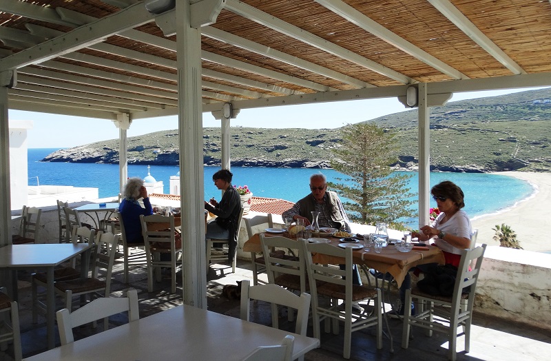 Άνοιξε κι "Παρέα". Έφτασαν κατά τις 12:30 οι πρώτοι πελάτες. Με θέα το αλμυρό Παραπόρτι. ή, άλλως ανοίξαμε και σας περιμένουμε... (φωτ. Εν Άνδρω).