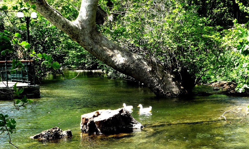 Εικόνες σαν ψεύτικες. Που όμως είναι αληθινές. Εικόνες ονειρικές. Το μικρό ποταμάκι να καταλήγει σε μια λιμνούλα με πάπιες!!! (φωτ. Εν Άνδρω).