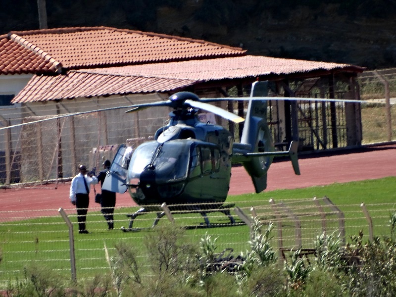 5 ελικόπτερα έφεραν μια σειρά VIP φίλους του Α. Σταματιάδη από την Αθήνα. Εδώ ένα από αυτά στο γήπεδο της Χώρας (φωτ. Εν Άνδρω).