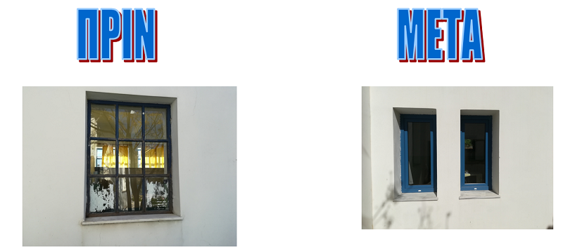Η αντικατάσταση των ξύλινων κουφωμάτων των παραθύρων και της θύρας με αλουμίνια βελτίωσε τις συνθήκες μάθησης των παιδιών, ο χώρος έγινε πιο ζεστός και φιλόξενος και οι μαθητές του σχολείου αισθάνονται οικεία. Και αυτό, γιατί τα κουφώματα ήταν ξύλινα και δεν έκλειναν καλά, με αποτέλεσμα τις κρύες ημέρες του χειμώνα να διαπερνάει το κρύο και τις βροχερές ημέρες να εισχωρεί η βροχή και να πλημμυρίζει τις αίθουσες. Ακόμη, υπήρχαν και παράθυρα που λόγω της αυξημένης υγρασίας του νησιού είχαν «φουσκώσει » και δεν ανοιγόκλειναν με ευκολία.