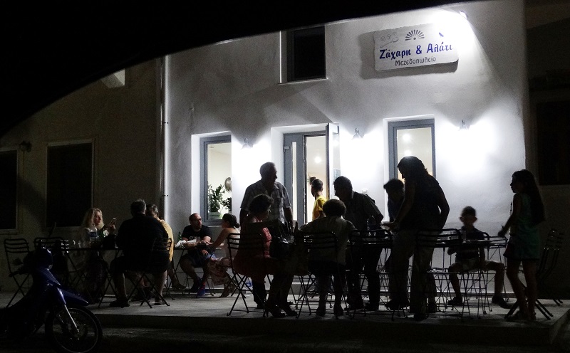 Απλωμένες οι παρέες μέσα στην όμορφη χαλαρή σεπτεμβριάτικη νύχτα. Απλωμένη νύχτα στην ήσυχη ατμόσφαιρά. Δεν κουνούσε φύλλο. Τα μελτέμια πέρασαν. Είμαστε πια στο μικρό καλοκαίρι του φθινοπώρου. Ή, μάλλον σε ένα καλοκαίρι που δεν λέει να τελειώσει ακόμα... (φωτ. Εν Άνδρω).