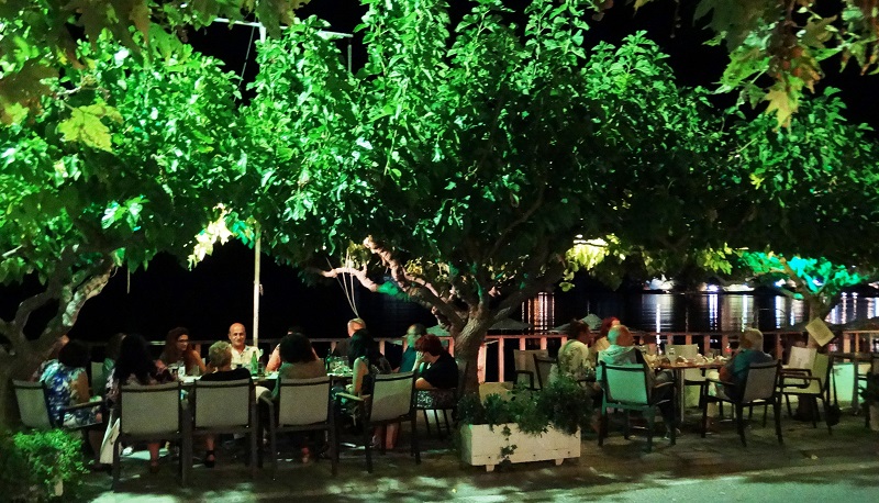 Προχώρησες μέχρι το τραπέζι που σε περίμενε. Προχώρησε και η ώρα που δεν περιμένει κανέναν μας. Γύρω στις 23:20 είπες να φύγεις. Βρήκες το αυτοκίνητο στην άλλη άκρη της παραλίας. Κάνεις στροφή και συνειδητοποιείς πως όλη η παραλία τέτοια ώρα κι έχει παντού κόσμο. Όπου είχε παραλιακό τραπέζια υπήρχε ακόμα κόσμος... (φωτ. Εν Άνδρω).