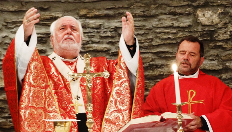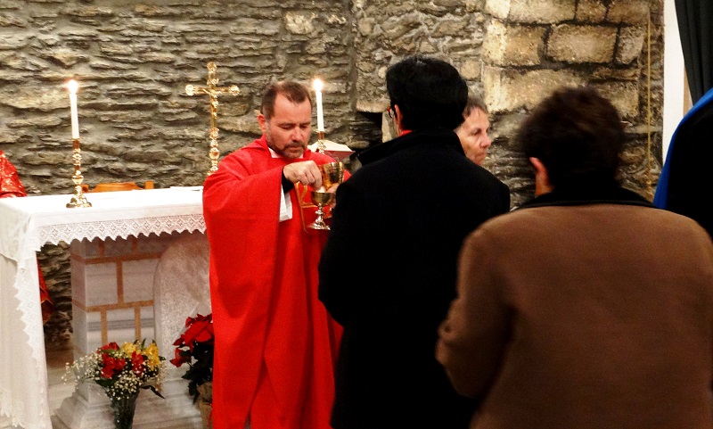 Ο πατέρας Φραγκίσκος στη διάρκεια Θείας Κοινωνίας (φωτ. Εν Άνδρω).