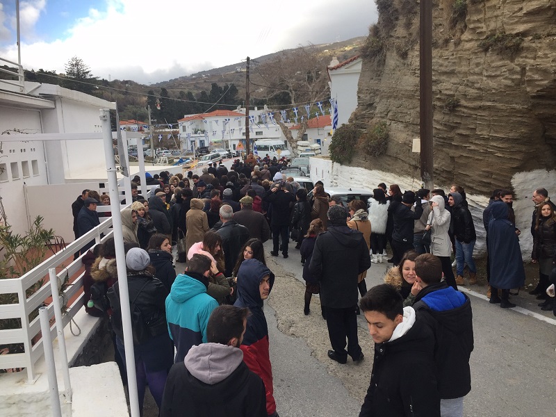 Από το κέρασμα στο Ναυτικό Όμιλο Άνδρου μετά το τέλος της λειτουργίας και της λειτανίας. Να σημειώσουμε πως παρόντες ήταν αρκετοί εκπρόσωποι συλλόγων και πρόεδροι χωριών της περιόχής.