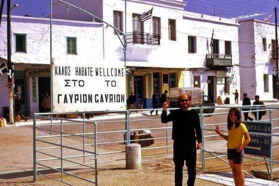 ΓΑΥΡΙΟ: Τα λιμάνια ήταν διαφορετικά. Μια ματιά στην παραπάνω φωτογραφία (την είχε στείλει αναγνώστης πριν καιρό και την κρατήσαμε) δείχνει πόσο διαφορετικά ήταν τότε τα λιμάνια. Εδώ βλέπουμε το Γαύριο σε μια από τις πρώτες έγχρωμες φωτογραφίες. Στα όρια της δεκαετίας του 1980 κι αυτή. Δείχνει ένα εντελώς άλλο Γαύριο. Ο δρόμος της παραλίας στενός. Τα μαγαζιά ξεχασμένα στην μεταπολεμική περίοδο. Και η πινακίδα στον μώλο να χαιρετά τους λίγους επισκέπτες και τους πολλούς κατοίκους! Οι δύο εικονιζόμενοι κάνουν το σήμα της νίκης! Και πίσω τους μια πινακίδα εξηγεί: Άνδρος 34 χιλιόμετρα...