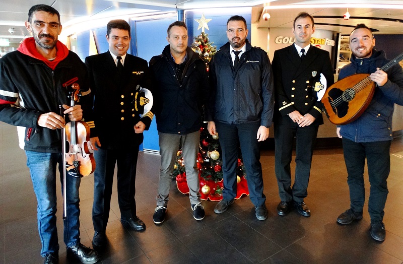 Η Άνδρος την Τετάρτη 2 Ιανουαρίου 2019 στις 10:00 υποδέχτηκε το πρώτο πλοίο της χρονιάς, το Superferry, στο λιμάνι του Γαυρίου με βιολιά και λαούτα και με κάλαντα. Ο Σταύρος Λαρίος και ο Γιώργος Κατσίκης από την Υδρούσα ήταν εκεί με αρκετούς ακόμα για να υποδεχτούν όλοι μαζί μετά από αρκετά χρόνια που το έθιμο της υποδοχής του πρώτου πλοίου που είχε ατονήσει στην Άνδρο της ναυτοσύνη. Στη φωτογραφία οι Λαρίος και Κατσίκης λένε τα κάλαντα την ώρα που το πλοίο δένει στο λιμάνι (φωτ. Εν Άνδρω)