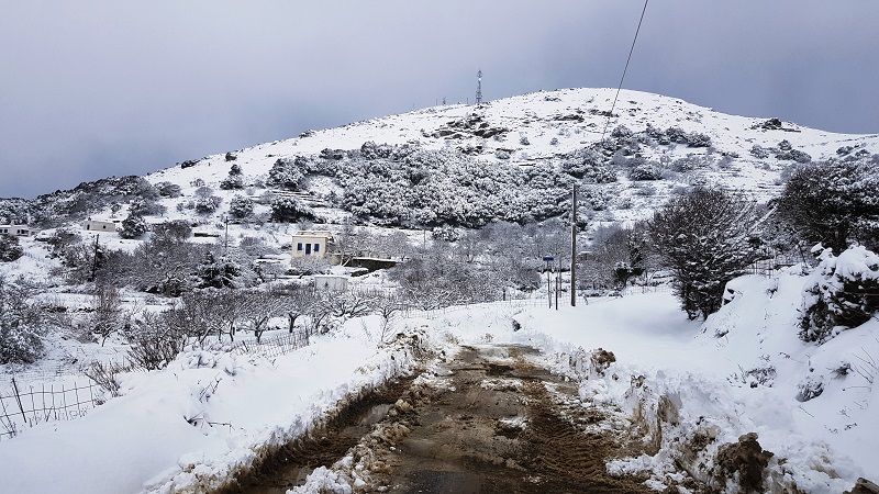 Αμόλοχος σήμερα το πρωί. Πολιτική Προστασία Δήμου και Περιφέρεια δίνουν μάχη στην Βόρεια Άνδρο για να ανοίξουν τους δρόμους.