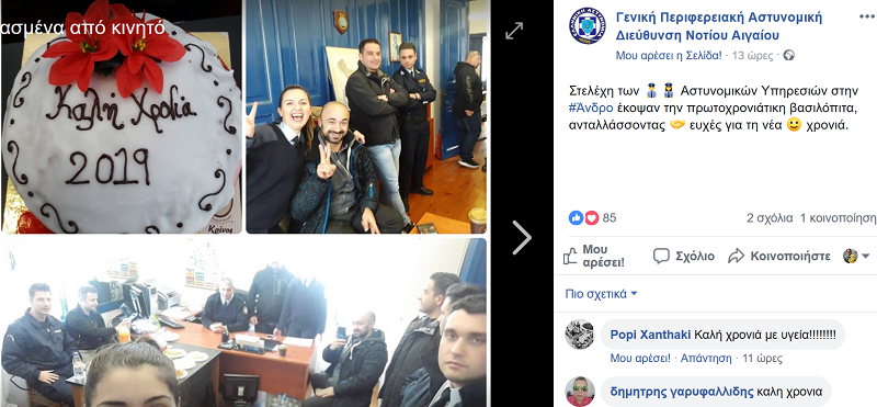 Καλή Χρονιά στην Αστυνομία Άνδρου και στον επικεφαλής του Γραφείου Τύπου Ν. Αιγαίου Αστυνόμο Π. Βασιλάκη