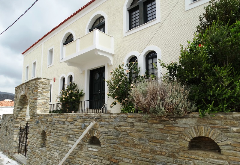 "Το κτήριο εγκαταλείφθηκε, το ιστορικό παρελθόν του ήταν αυτό που το κράτησε όρθιο. Κι ήταν αυτό που το διάσωσε ως ξενοδοχείο. Ξανάνοιξε το 2014. Ένα κουκλίστικο ξενοδοχείο. Σήμερα δίνει την μάχη του με τα άλλα σημαντικά ξενοδοχεία του νησιού μας" ολοκληρώνει την αφήγηση του ο Γιάννης. Κοιτάμε το κλειστό όμορφο κτήριο. Με την παλιά λιτή αρχοντική γραμμή του 19ου αιώνα. Αυτή η γραμμή μαζί με την ιστορία του το διέσωσαν και το έφεραν μέχρι σήμερα μια διαδρομή που φτάνει τα 160 χρόνια... (φωτ. Εν Άνδρω).