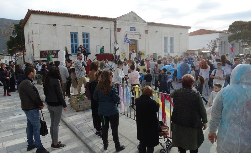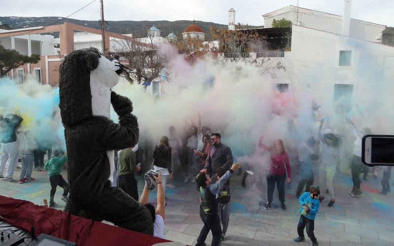 Άλλη μια φωτογραφία του πλήθους που υπό τους ήχους της μουσικής και τις οδηγίες της "μασκώτ" και του Βασίλη Μπατή από το Γαύριο που ήταν στην κονσόλα του ήχου συντάχθηκαν όλοι μαζί για το color party... (φωτ. Εν Άνδρω).