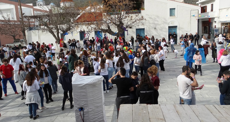Συμμετέχοντες με πολλούς τρόπους όπως εδώ η μασκαρεμένη κυρία μέσα σε ένα χαρούμενο πλήθος νέων (φωτ. Εν Άνδρω).