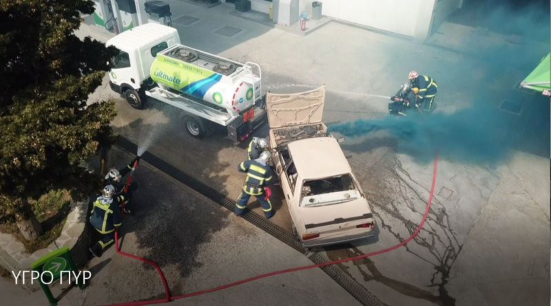 Στη συγκεκριμένη περίπτωση εκτελέστηκε με επιτυχία το σενάριο της διάσωσης δύο τραυματιών μετά από σύγκρουση αυτοκινήτων σε πρατήριο καυσίμων με την φωτιά να εξαπλώνεται εντός και εντός του πρατηρίου (φωτ. από το βίντεο της Πυροσβεστικής).