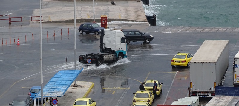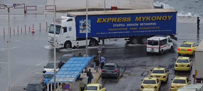 Οι νταλίκες σε κάποια σημεία του λιμανιού μοιάζουν πλοία που διασχίζουν τη θάλασσα... (φωτ. Εν Άνδρω).