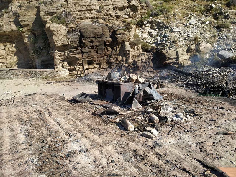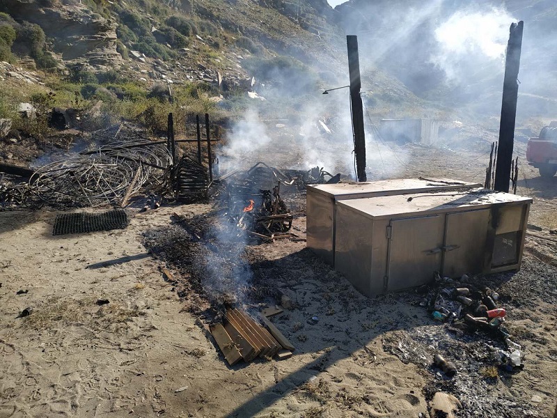 Στον τόπο της καταστροφής κατέφθασε ειδοποιημένο από τους ιδιοκτήτες - που βρήκαν σήμερα το πρωί την περιουσία τους αφανισμένη - η αστυνομία, η πυροσβεστική και το λιμενικό. Ανακρίσεις διεξάγει το αστυνομικό τμήμα Χώρας. Έρευνα διεξάγει η πυροσβεστική. Σύμφωνα με πληροφορίες έχει καταγγελθεί ήδη όνομα υπόπτου.