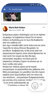 (Το  παρακάτω συγκλονιστικό κείμενο δημοσιεύθηκε πριν λίγες ώρες στο facebook της κ. Μaria Bati Hutton. Tο έστειλε αναγνώστης στο site. Το anaδημοσιεύουμε χωρίς λόγια - Εν Άνδρω)