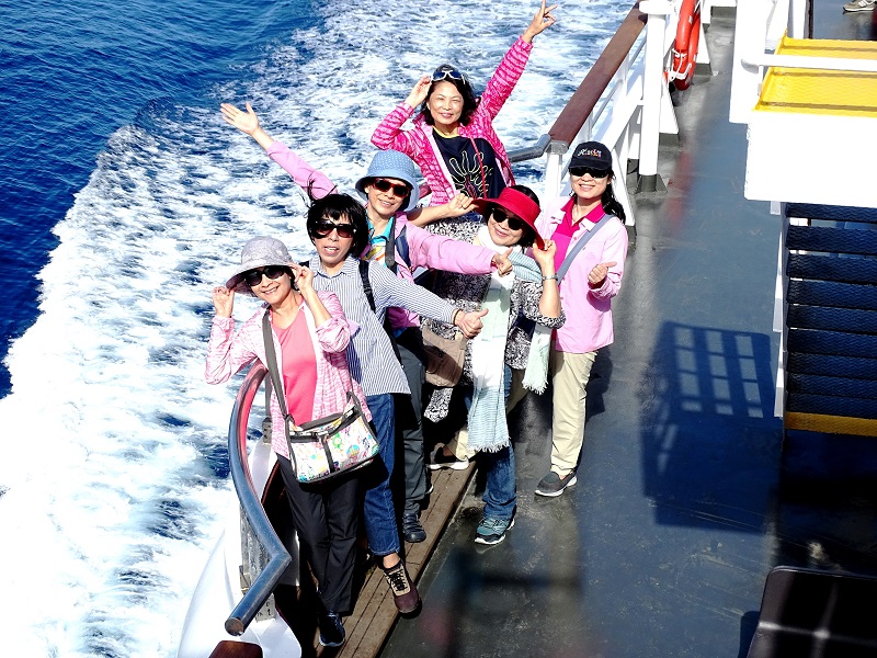 Οι κυρίες από Ταϊβάν. Ταξιδεύουν με το Superferry. Ταξιδεύουμε μαζί και μας χαιρετάνε. Καλοκαιρινή στιγμή από αυτές που χαρακτηρίζουν το μεγάλο ελληνικό αιγαιοπελαγίτικο καλοκαίρι... (φωτ. Εν Άνδρω).