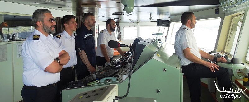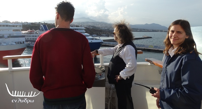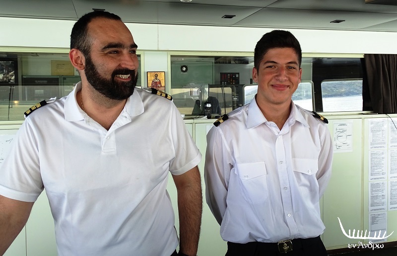 Η ναυτομάνα Άνδρος πάντα είχε στενή σχέση με την θάλασσα. Ξέκοψε για ένα διάστημα στα χρόνια της τεχνητής ευμάρειας που προηγήθηκαν της κρίσης. Όμως μέσα στην κρίση τα νέα παιδιά βλέποντας τις δυσκολίες της στεριάς στράφηκαν πάλι προς την θάλασσα. Το ναυτικό λύκειο πέτυχε επιδόσεις υψηλές και πολλά παιδιά του νησιού βρέθηκαν στις σχολές εμποροπλοιάρχων. Και ξαναβγήκαν για μπάρκο. Εκπαιδευτικό στην αρχή. Και κανονικό στη συνέχεια. Μερικά τα συναντήσαμε στα ακτοπλοϊκά της γραμμής μας. Όπως εδώ στην φωτογραφία τον Γιώργο Γιγίνη από το Κόρθι τον βρήκαμε στο Superferry.