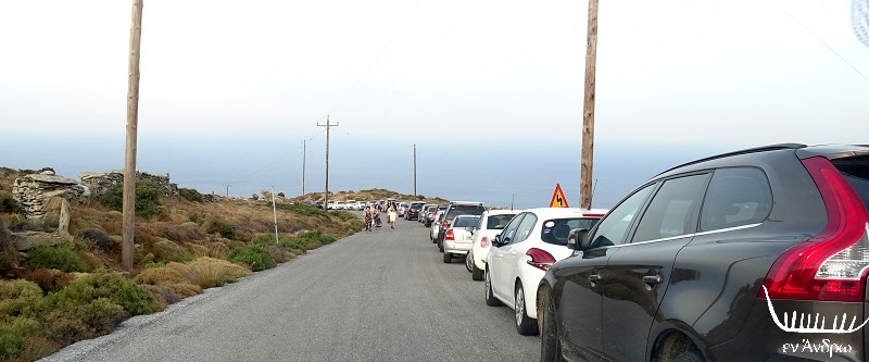 Ανηφορίζοντας για τις Εβρουσιές είχες μια πανοραμική θέα των αυτοκινήτων, αλλά όχι του κόσμου, που είχε ήδη σπεύσει στο μοναστήρι δημιουργώντας το αδιαχώρητο. Το αδιαχώρητο και στο στενότερο σχετικά δρόμο προς Αγία Μαρίνα από την διασταύρωση προς το μοναστήρι. Μεγάλο το πλήθος που έφτασε από κάθε γωνιά της Άνδρου στη γιορτή του μοναστηριού.