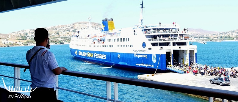 Φτάνοντας στην Πάρο σημείο καθημερινής συνάντησης των δύο Superferry είναι εκατοντάδες τα πρόσωπα που αποβιβάζουν και επιβιβάζουν τα πλοία. Ένας ασιάτης αποτυπώνει τις εικόνες στο κινητό του...