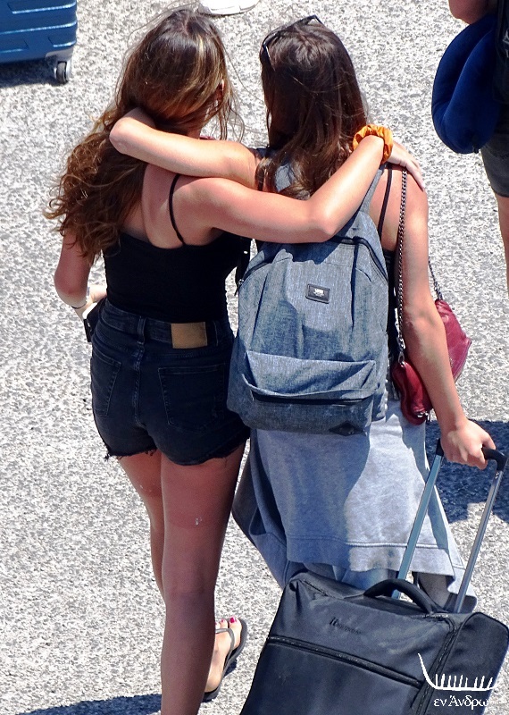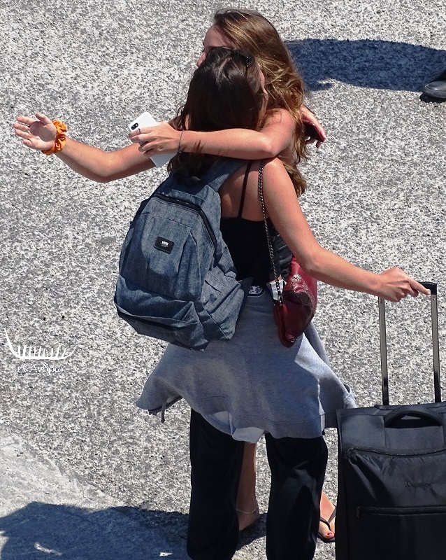 Δύο κοπέλες που επιτέλους συναντώνται στην Πάρο. Η μια μόλις αφίχθηκε. Την υποδέχεται η φίλη της.