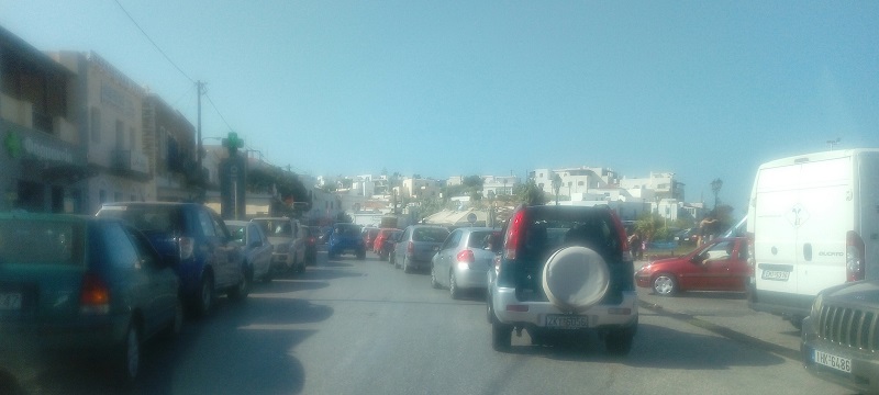 Σήμερα το πρωί Δευτέρα 5.8 η κατάσταση ήταν άθλια έως απαράδεκτη. Δρόμοι στενοί, παρανόμως σταθμευμένα δεκάδες αυτοκίνητα, τραπεζοκαθίσματα σχεδόν παντού, έλλειψη αστυνόμευσης – η αστυνομία κραυγαλέα απούσα τις ώρες αιχμής. Μόνο το λιμενικό ήταν παρών μέσα στο λιμάνι - ευτυχώς – και ρύθμιζε την κατάσταση. Έξω όμως από αυτό η κατάσταση ήταν τριτοκοσμική. Κανείς δεν ρύθμιζε την κυκλοφορία πουθενά, ούτε και στον μικρό δρόμο εισόδου και εξόδου από την πόλη. Ήταν μια ταλαιπωρία. Ήμουν στο λιμάνι από τις εννέα περιμένοντας έναν φίλο μου. Ήρθαν τέσσερα πλοία σε 35 λεπτά. Δημιουργήθηκε χάος. Οι εικόνες από τις φωτογραφίες που στέλνω μιλούν από μόνες τους. Δεν πάει άλλο…