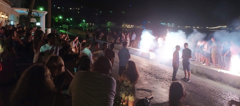 Αρκετά νωρίτερα είχαν και πυροτεχνήματα. Εκατοντάδες αυτοί που έσπευσαν με ποτό ή χωρίς να δουν τα πυροτεχνήματα γύρω στις 4 το πρωί έξω από το μπαρ στην παραλία....