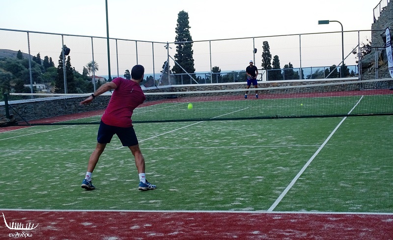 Στον τελικό βρέθηκαν ο Σταμάτης Βρεττός από τα Αποικία που έκανε μια καλή εμφάνιση κι έφτασε στον τελικό όπου έπαιξε με το Νίκο Πανεθυμητάκη, που ήρθε στην Άνδρο από το εξωτερικό για να παίξει στο τουρνουά της Άνδρου. Πέρσι είχε συμμετάχει στο τουρνουά τένις της Πάρου. Μετά απο πολύ καλή εμφάνιση ο Ν. Πανεθυμητάκης κέρδισε στον τελικό τον Σ. Βρεττό 2-0 σετ. Στη φωτογραφία ο Σ. Βρεττός αποκρούει μπαλιά του Ν. Πανεθυμητάκη...