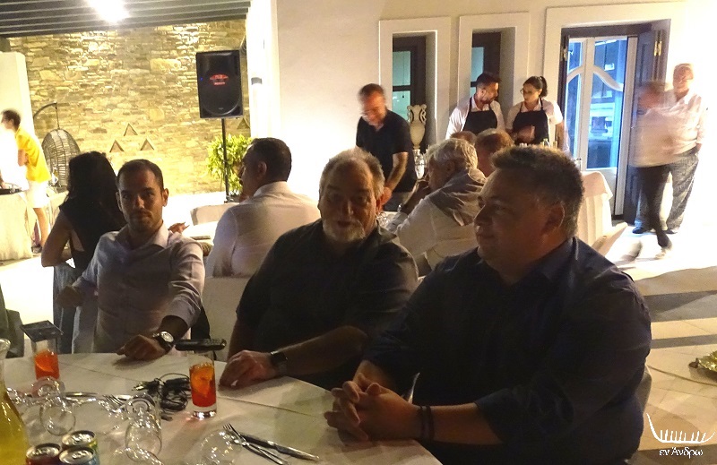 Είχαν προσκληθεί και οι πέντε υποψήφιοι δήμαρχοι: Λοτσάρης, Σουσούδης, Καπάκης, Γιαννίσης, Μπάλλας. Οι τρεις παραβρέθηκαν (Λοτσάρης, Σουσούδης, Μπάλλας). Ο Γιαννίσης είχε δουλειά στην Πάρο και ο Καπάκης δήλωσε κώλυμα! Παρόντες ήταν και αστυνομικός διευθυντής Άνδρου και ο λιμενάρχης Άνδρου. Στη φωτογραφία στο τραπέζι των πολιτικών εκ δεξιών οι Δ. Λοτσάρης, Λ. Μπάλλας και ο υιός Γ. Μπάλλας.