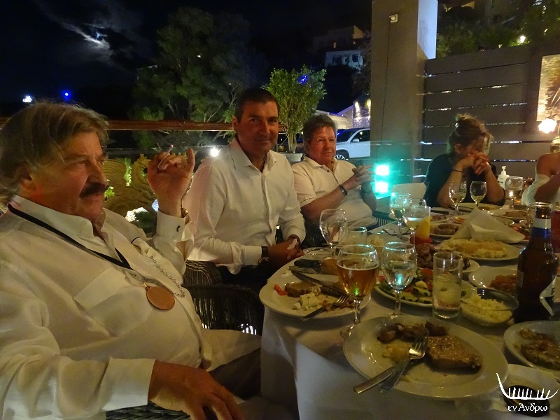 Μετά τον τελικό αθλητές και συνοδοί μαζί με δεκάδες καλεσμένους από όλη την Άνδρο προσήλθαν στην δεξίωση που διοργάνωσε ο οικοδεσπότης Γιαννούλης Καμπάνης στο σπίτι του, στο κτήμα του στις Στενιές.