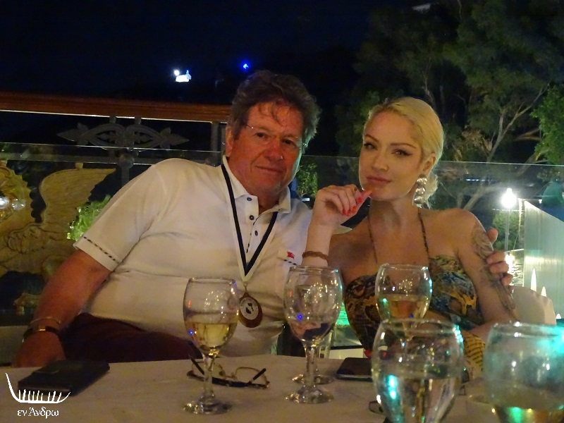 Στην παρέα και ο εκ των ιδιοκτητών Golden Star Ferries Γιώργος Στεφανου με την όμορφη τραγουδίστρια της βραδιάς.