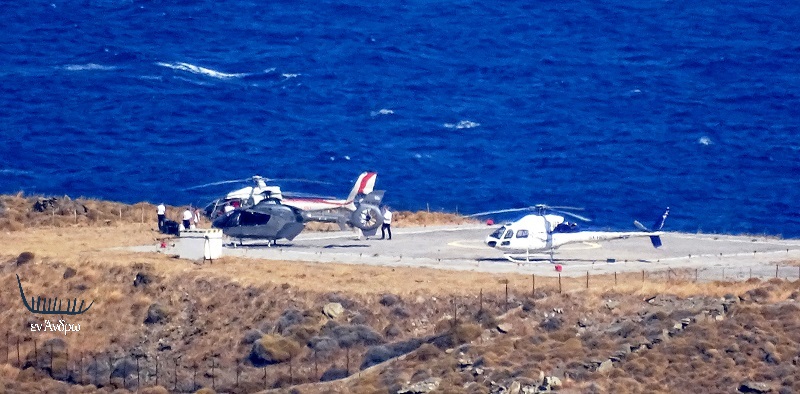 Θα σας μεταφέρουμε μια ιστορία μαζικής αναχώρησης ελικοπτεράτων επισκεπτών της Άνδρου. Ώρα 16:00. Η κοιλάδα της Χώρας βουίζει. Ελικόπτερο. "Ποιος τραυματίστηκε πάλι", αναρωτιέσαι. Λίγα λεπτά αργότερα ξανά βουή μηχανής. "Θα έφυγε το ελικόπτερο", σκέφτεσαι και βγαίνεις στην βεράντα. Υπάρχει ήδη ένα ελικόπτερο προσγειωμένο στο ελικοδρόμιο. Δίπλα του ένα βανάκι μεταφοράς επιβατών. Και ήδη δίπλα προσγειώνεται και δεύτερο! "Μα τι συμβαίνει με τα ελικόπτερα" αναρωτιέσαι...
