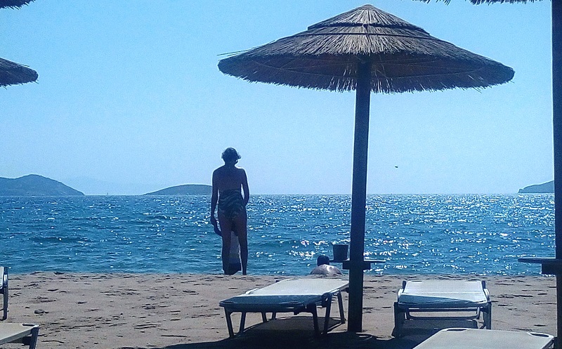 Άλλος μπαμπάς με παιδάκι έτοιμοι να βουτήξουν. Σκόρπιοι οι φθινοπωρινοί εραστές της θάλασσας, αραχτοί στις ξαπλώστρες. Με τρία μποφόρ. Και στο βάθος η Κουβάρα να δεσπόζει. Με την κορυφή στον καταγάλανο ουρανό. Αν κρατήσει ο καιρός θα κρατήσουν και τα μπαρ στις παραλίες. Αν κρατήσει ο καιρός θα κρατήσουν και κάποια μπαρ στο Μπατσί που σιγά-σιγά αδειάζει. Για το Σάββατο ένα από αυτά θα έχει αφιέρωμα στη δεκαετία του 1980 και του 1990. Όσοι πιστοί αυτών των δεκαετιών προσέλθετε. Για τους άλλους που αγαπούν άλλες εποχές υπάρχουν ανοιχτά και άλλα μπαρ στα πέριξ ή δίπλα...