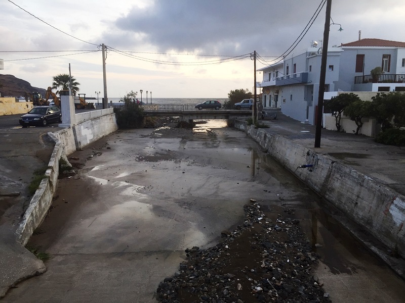 Το ποταμάκι του Νειμποριού σήμερα πρωί κυλά ήρεμα στη θάλασσα. Ο Νειμποριός επλήγη σχετικά λιγότερο από τα άλλα μέρη.