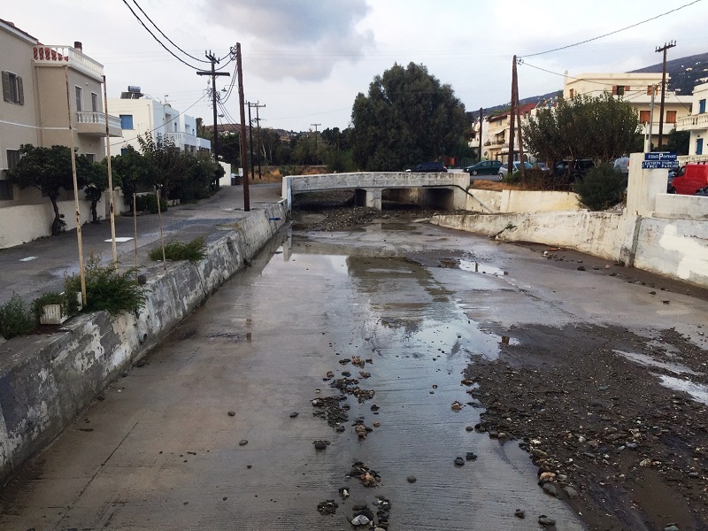 Υπάρχουν βέβαια λάσπες και πέτρες στην τσιμεντένια κοίτη του. Το ρέμα είχε καθαριστεί...