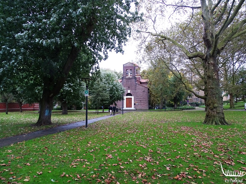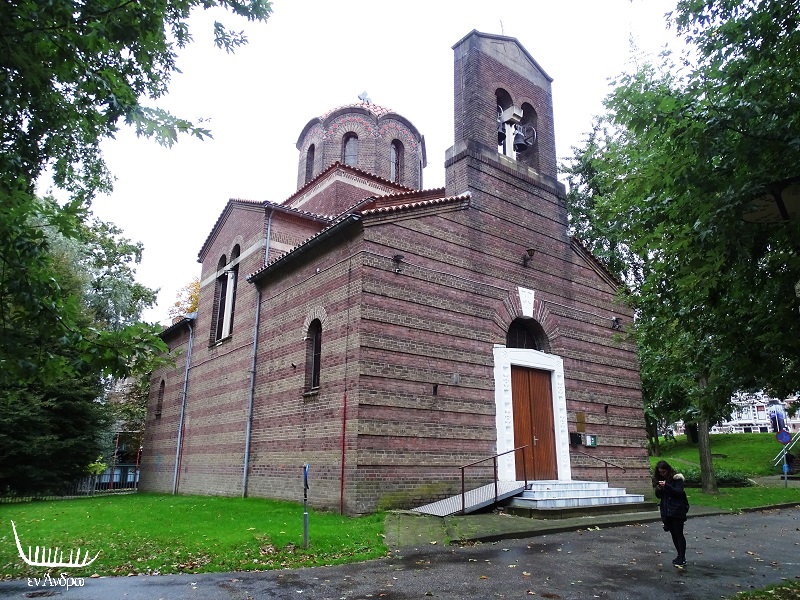 Βράδιαζε όταν έφτασα στο πάρκο που ήταν η μεγάλη πέτρινη βυζαντινή εκκλησιά ρυθμού "σταυροειδούς μετά τρούλου" όπως μαθαίναμε στο γυμνάσιο. Σε μια ξεχωριστή γειτονιά. Στο κέντρο της πόλης δίπλα στα μουσεία. "Αλήθεια, πως κατάφεραν οι Έλληνες κι έφτιαξαν την εκκλησία τους σε μια τόσο ξεχωριστή περιοχή", αναρωτήθηκες. Καθώς πλησιάζαμε ανάμεσα από τα ψηλά αιωνόβια δέντρα ξεπρόβαλε ολόκληρος ο ναός:  απλός και απέριττος, μοναχικός και σιωπηλός, απόμακρος και περίκλειστος. Να συμβολίζει κάτι από την πατρίδα, αλλά και κάτι από τους ανθρώπους που έφτασαν σε αυτό μεγάλο λιμάνι της κάποτε θαλασσοκράτειρας Ολλανδίας.