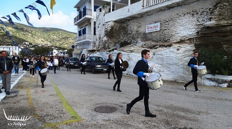 Τον ρυθμό της πομπής κράτησαν με εξαιρετικό τρόπο οι τυμπανιστές/μαθητές από την Υδρούσα.