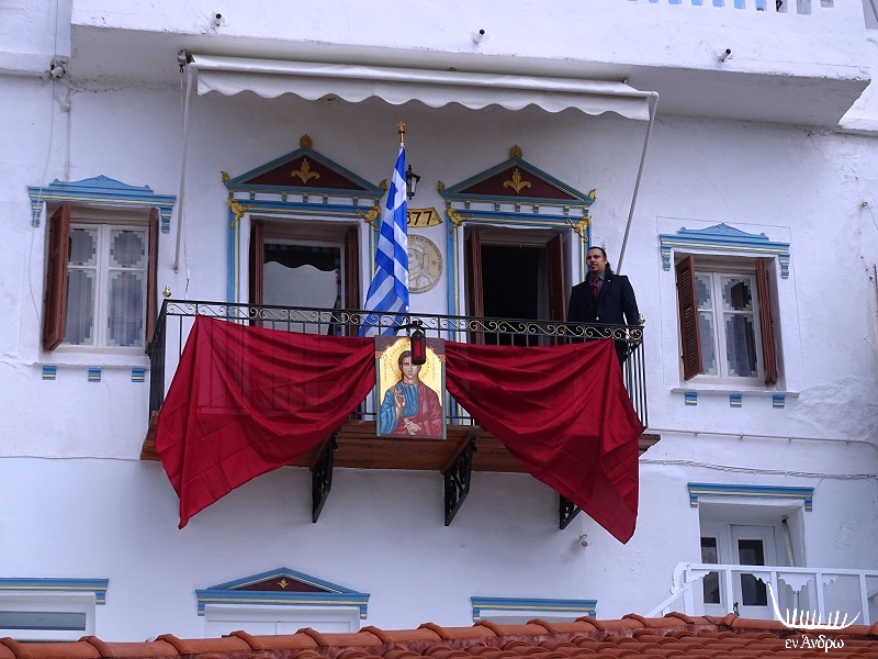 Ο καπετάν Θανάσης Χαλάς αποφάσισε μέρα που ήταν σήμερα να τιμήσει με τον τρόπο αυτό τη δεύτερη μεγαλύτερη θρησκευτική γιορτή της Άνδρου (μετά τη Θεοσκέπαστη): τον εορτάζοντα Άγιο Φίλιππο. "Ήταν σαν μια ευχή και σαν μια προσευχή" μας είπε όταν τον ρωτήσαμε στο τηλέφωνο πως και έκανε αυτή την κίνηση. Μια ευχή ζωής και μια προσευχή στην οποία απάντησαν από την εκκλησία με χαρμόσυνες κωδωνοκρουσίες...