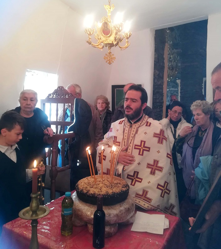 «Μετά από 40 και πλέον χρόνια την 1η Δεκεμβρίου ημέρα Κυριακή τελέσαμε την θεία λειτουργία μετά της αρτοκλασίας στο παρεκκλήσιο του Αγίου Νικολάου προσαρτημένο στον Ιερό Ναό του Αγίου Συμεών στη Λειβάδιζα των 3 κατοίκων, παρουσία 20 ανθρώπων από τις γύρω περιοχές. Η λειτουργία ξεκίνησε στις 8 και τελειώσαμε στις 11. Μετά το πέρας της θείας λειτουργίας δεχθήκαμε φιλοξενία σε τοπικό σπίτι συμμετέχοντος στο πανηγύρι. Σας γράφω για να θυμηθεί η Άνδρος πως υπάρχουμε κι εμείς…»