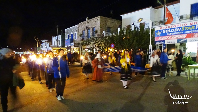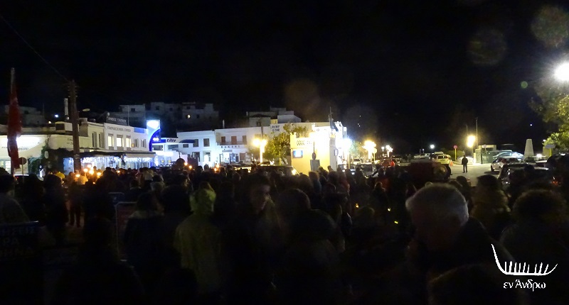 Κι άρχισαν οι λόγοι και η μουσική. Πολλοί χαιρετισμοί, πολλές ευχαριστίες προς όλους όσους δούλεψαν για την γιορτή. Ειδικά για τους αδελφούς Τριδήμα που εργάστηκαν κι έστησαν το σκηνικό. Όμως ο πρώτος ομιλητής ξέχασε να αναφέρει (αν και διάβαζε το κείμενο) τον Δήμο Άνδρου που πρόσφερε τον μπουφέ! Την επόμενη χρονιά ίσως το θυμηθεί. Ευτυχώς το θυμήθηκε ο πρόεδρος του Τοπικού και το ανέφερε. Την έκδήλωση χαιρέτισαν ο πρόεδρος του Τοπικού, ο δήμαρχος Άνδρου και ο έπαρχος Άνδρου. Ευτυχώς ήταν σύντομοι όλοι τους...