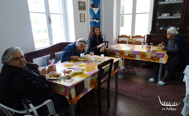 Όλα τα παραπάνω τα συζητήσαμε με την κ. Μανάλη, που είναι γραμματέας του Ιδρύματος, την Κυριακή το πρωί 29 Δεκεμβρίου 2019, με αφορμή την επίσκεψη του Συλλόγου Αλαδινού και την προσφορά δώρων και χαράς προς τους 18 ηλικιωμένους που ζουν στο Γηροκομείο. Για τους 18 ηλικιωμένους υπάρχει 9μελές προσωπικό που φροντίζει την διαμονή τους και το κτίριο. Παρών στην επίσκεψη από την μεριά του Δήμου Άνδρου, που έχει κι αυτός βάσει του κανονισμού δύο μέλη στο ΔΣ του Ιδρύματος ο αντιδήμαρχος Δημήτρης Γιαννίσης, που η επιστροφή του στα κοινά σηματοδότησε μια έντονη παρουσία του Δήμου Άνδρου στα Ιδρύματα και Κληροδοτήματα στα οποία είχε και έχει ρόλο, αλλά αυτός είχε ατονήσει εδώ και αρκετά χρόνια.