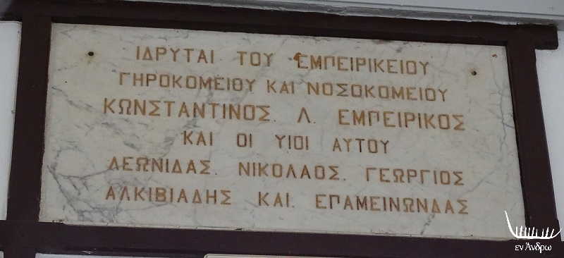 Το 1894 ο Κωνσταντίνος Εμπειρίκος προβαίνει σε μια γενναιόδωρη προσφορά προς την Άνδρο: παραχωρεί το οικόπεδο και συστήνει το Ίδρυμα το οποίο στη συνέχεια, το 1896, ξεκινά την έναρξη οικοδόμησης του Γηροκομείου και Νοσοκομείου Άνδρου. Το κτίριο τέλειωσε και λειτούργησε το 1899. Ήταν μια σπουδαία προσφορά προς την Άνδρο την οποία διασφάλισε με το Ίδρυμα που δημιούργησε και με την βοήθεια των πέντε γιων του, που συνέχισαν και ολοκλήρωσαν το έργο του πατέρα τους. Από τους πέντε γιους που συνέδραμαν ο Επαμεινώνδας ήταν ο πρώτος πρόεδρος του, αν και στον κανονισμό του προβλέπεται να υπάρχουν άλλοι δύο Εμπειρίκοι στο Διοικητικό Συμβούλιο του.